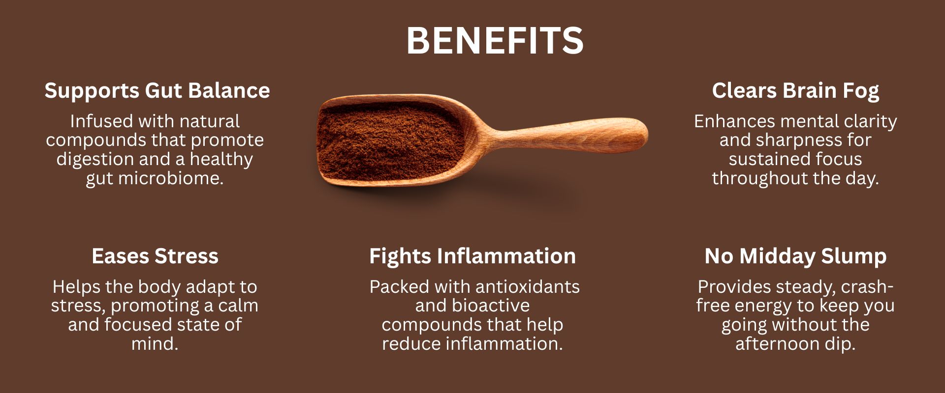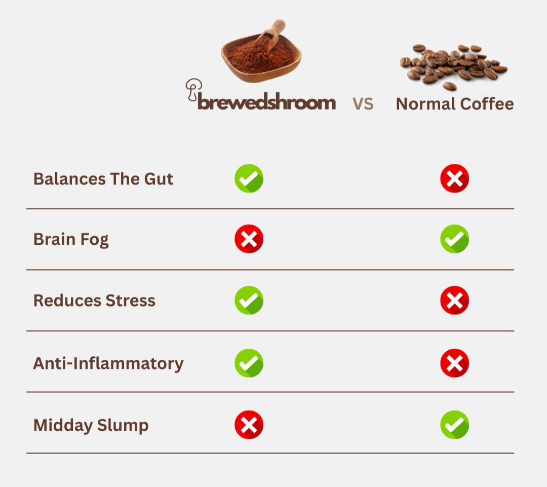 BrewedShroom is a bold, smooth blend of Premium Arabica Coffee infused with Lion’s Mane, Chaga, and Reishi mushrooms for a rich, earthy depth of flavor and a touch of ancient wellness.